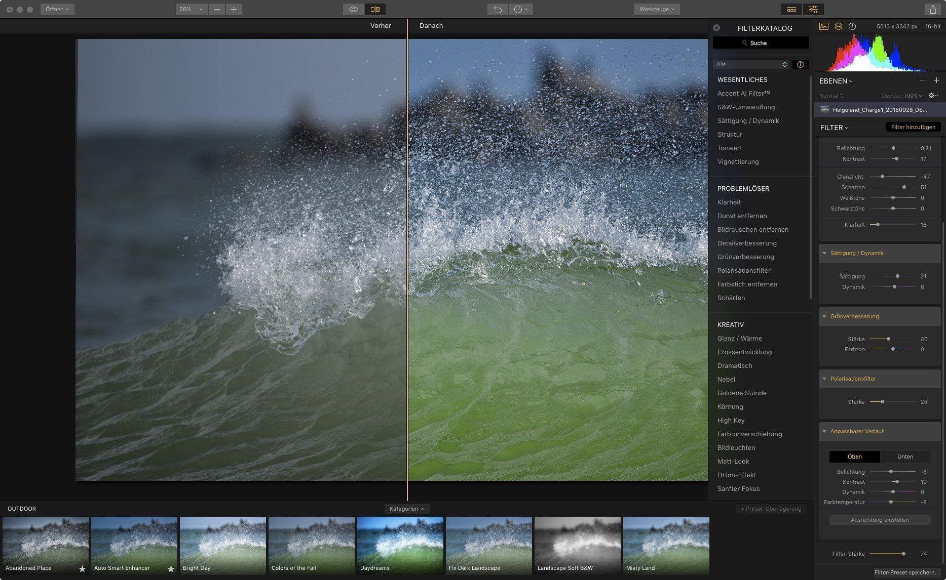 - Grundlagen der Bildbearbeitung: u.a. Histogramm verstehen, Bildoptimierung, Konvertierung in Schwarzweiß, Umwandlung RAW- in JPEG-Format