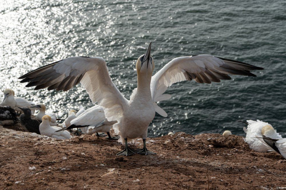 An den ersten beiden Workshoptagen standen die Basstölpel und ihr Nachwuchs im Fokus. Dank teils stürmischer Winde aus West und Südwest konnten die Teilnehmer das Fotografieren der eleganten Seevögel im Flug bestens üben. Auch Porträtaufnahmen einzelner Tiere sowie Interaktionen zwischen den Altvögeln und den Jungvögeln, z. B. die Fütterung, waren beliebte Motive. Eine Bildbesprechung am zweiten Tag unterstützt die Teilnehmer bei der Optimierung ihrer Bildgestaltung, gibt Tipps zur Aufnahmetechnik und neue Impulse durch das Betrachten der Fotos der anderen Teilnehmer.