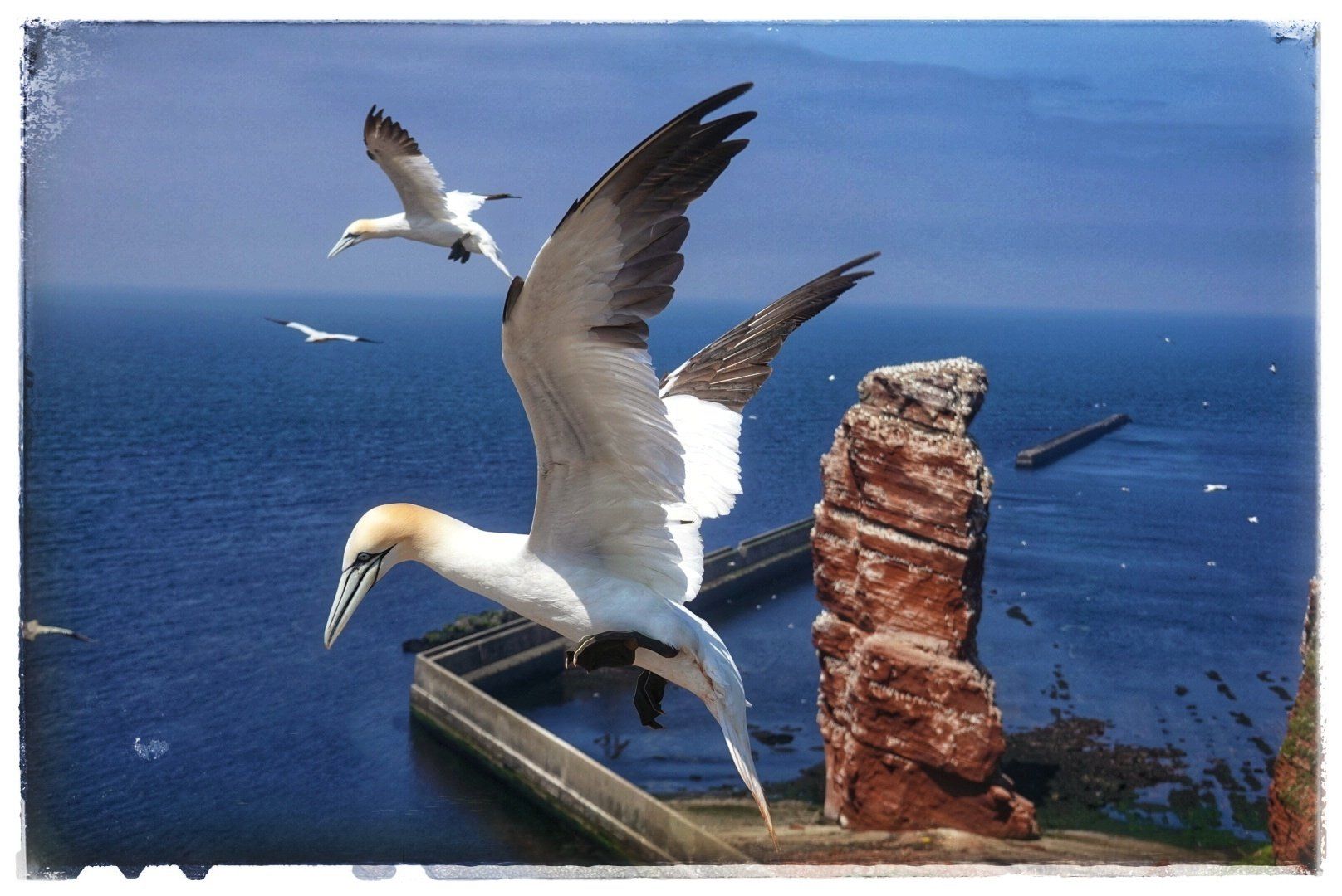 Flugaufnahmen der eleganten Basstölpel geübt werden.