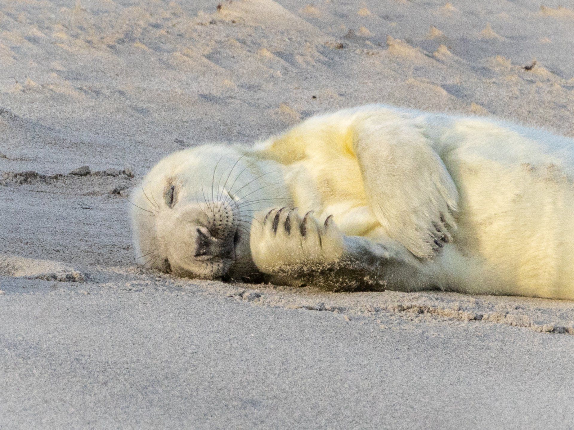 Nachdem die Fotoworkshops im Juni und September sehr ergiebig waren, habe ich in 2021 erstmalig zwei Workshops in der Winterzeit durchgeführt – mit dem Fokus auf die Robben-Fotografie. Von November bis Januar werden auf der Helgoländer Düne inzwischen mehr als 600 Jungtiere geboren. Es ist ein einzigartiges und auch emotionales Ereignis, dies in gebührendem Abstand aber dennoch aus unmittelbarer Nähe miterleben zu dürfen.