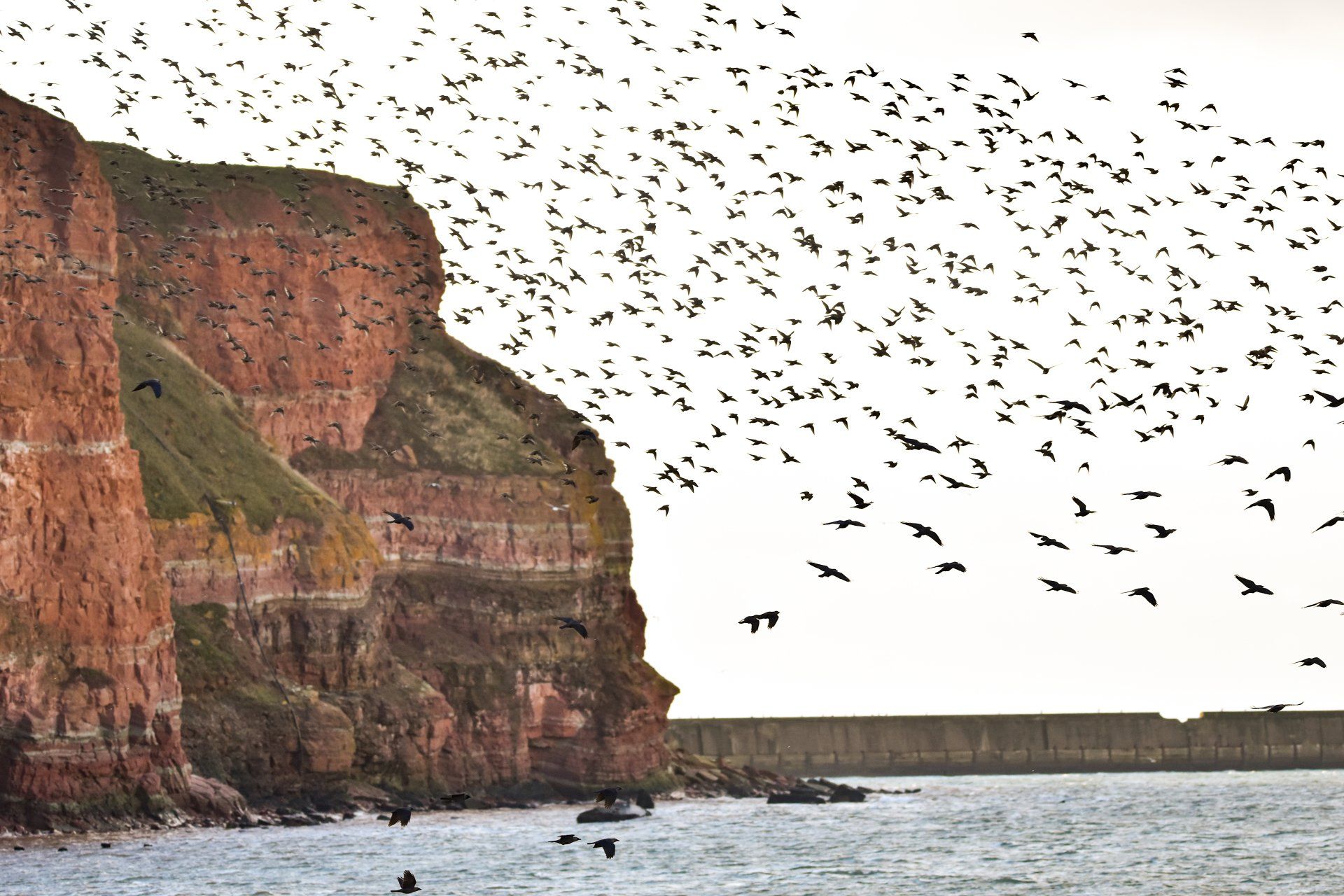 Zur Freude einer begeisterten Hobbyornithologin konnten wir einige seltenere Arten wie Schneeammer, Zwergammer und Singschwäne fotografieren sowie Trottellummen, die sich tageweise an den Westklippen aufhielten, oder gar eine Eisente vor der Hauptinsel.